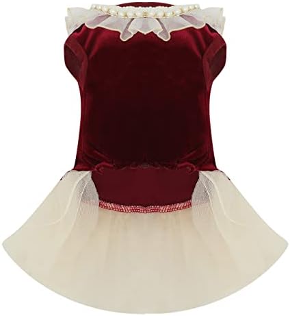 Dog Velvet Dress Lace Tulle Tutu Outfit Skirt with Pearls Accessory for Small Medium Girl Dogs Christmas Holiday Wedding Birthday Party (Red, L)